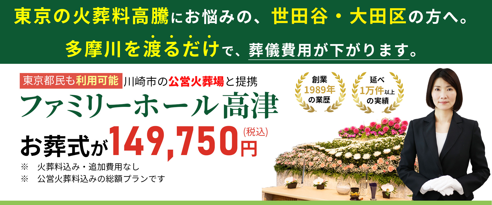 「後から高額請求された」等のトラブルとは無縁の、地域密着の健全な葬儀社です。1万件以上の実績があります。